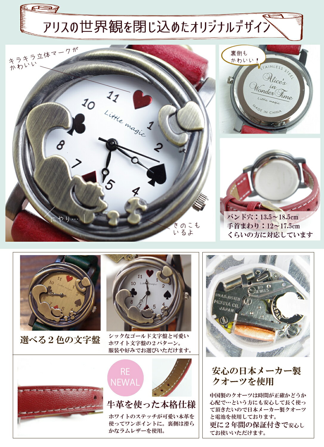 【 安心の耐久性】ベルトには本革を使用!クオーツは安心の日本メーカー製クオーツを採用 【 可愛いステッチベルト 】白ステッチがワンポイントで可愛い 【 音も静か!】日本メーカー製を使用しているので秒針の音が気にならない 【 取扱説明、ギフトBOX付き 】 : 2年間保証書付きの簡易説明と可愛いリボン付きギフトBOXが付いているので自分用にももちろん大切な人へのプレゼントにも最適です。